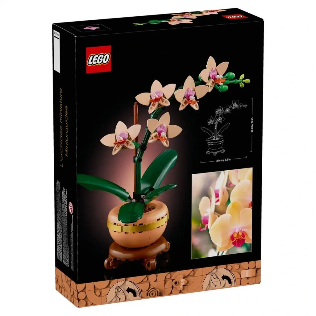 Aslına uygun model, çiçek açmış 5 orkide çiçeği ve birkaç tomurcuğun yanı sıra ekstra özgünlük katan yapraklar içerir. Ayrıca ahşap efektli güzel bir zemin üzerine oturan açık kiremit rengi saksısı sayesinde hevesli çiçekçiler, tüm yaşam veya çalışma alanlarına doğanın huzurunu getirmek için LEGO çiçeğini güzel ve dekoratif bir ev veya ofis modeli olarak gururla sergileyebilir.
