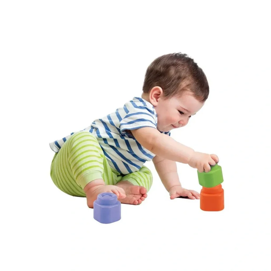 Paket 10 adet yumuşak Clemmy yapı bloğu içerir. Blokları üst üste koymak, bir araya getirmek bebeğinizin el becerilerini geliştirir.