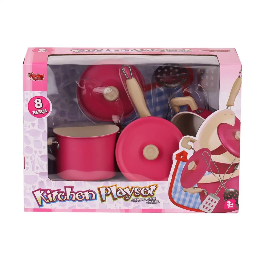 1818-7a Emaye Tencere 8 Parça Pembe -vardem Oyuncak