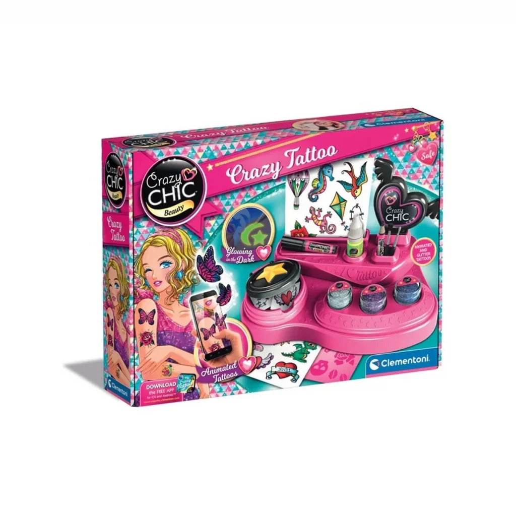 Ürün yapışkan şablonlar, renkli simler ve Karanlıkta Parlayan vücut boyası içerir. Özellikle tüm Çılgın kızlar için dövme tezgahında daha gerçek görünen pek çok harika dövme de yer alıyor.