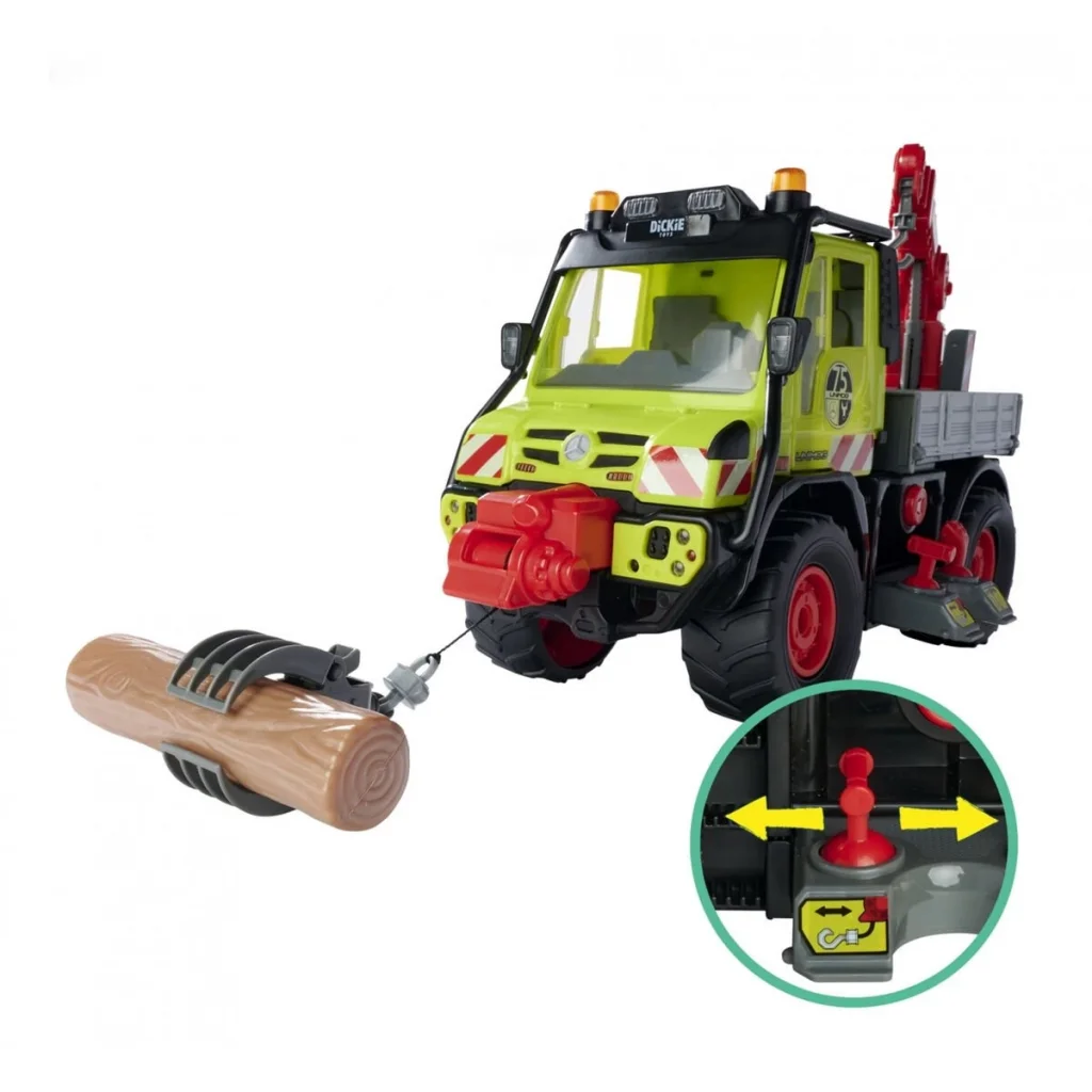 Kablo vinci ve joystick ile kontrol edilebilen vinç koluna sahip olan bu 50 cm'lik oyuncak tomruk kamyonu, küçük çocuğunuzun eğlenmesini garanti eden özelliklerle doludur.