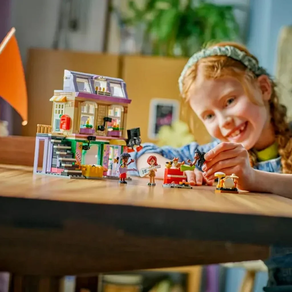 - Müzikseverler için yapım seti hediyesi – LEGO® Friends Müzik Mağazası ve Daire setinde oyuncak bateri seti, piyano, gitar, saksafon gibi pek çok müzik temalı aksesuar bulunur