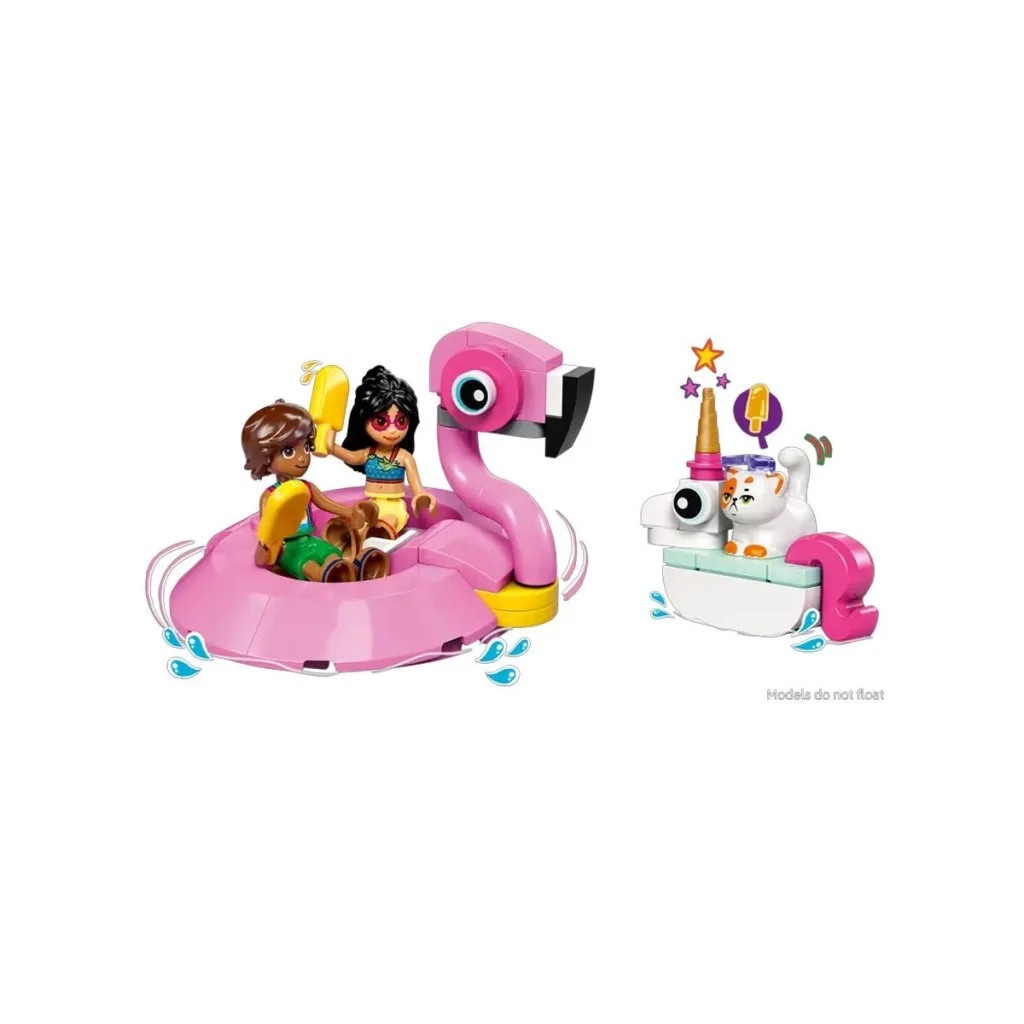 - İnşa edilebilen 2 şişme oyuncak – Çocuklar şişme flamingo, şişme tek boynuzlu at ve şezlong ile DJ kabini içeren havuz başı sahnesini birleştirirken yapım becerileri gelişir