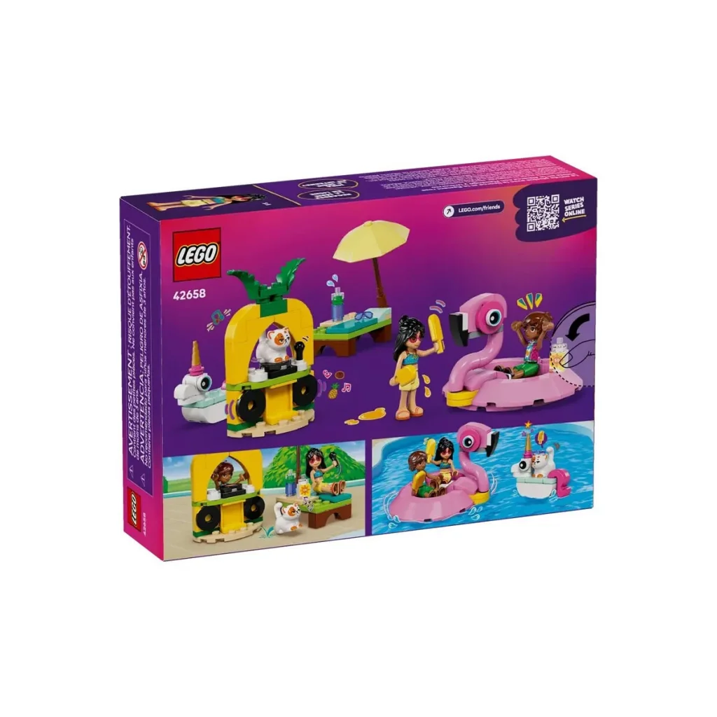 Çocukların LEGO® Friends Tek Boynuzlu At ve Flamingo Havuz Partisi'nde (42658) hikaye anlatımına dalabileceği bu yapım seti, rol yapma fırsatlarıyla doludur. 5 yaş ve üzeri kız ve erkek çocuklara yönelik bu set, inşa edilebilen 2 şişme havuz oyuncağı, havuz aksesuarları, 2 LEGO Friends mini bebek ve bir kedi figürü içerir.