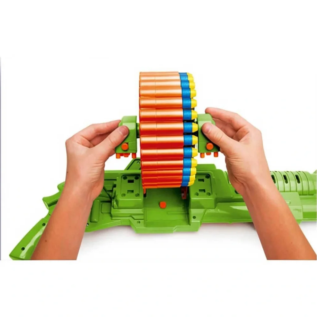 Kolaylıkla çıkan şarjöre dartları yerleştirin, kolu çekin ve oyuna başlayın! Bu özel tasarıma sahip sünger dart atan silah ile macera sevenler artık kendilerine çok daha güvenerek kapışmalara katılacak!