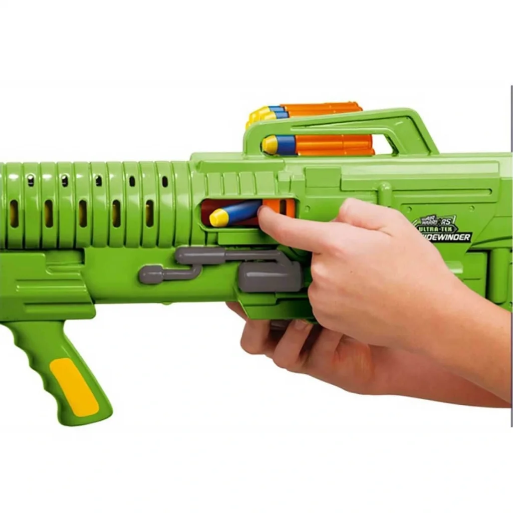 Air Warrriors Sidewinder Silah ile macera dolu oyunlara hazır olun! Sidewinder sünger dart atan silahın uzun menzili, atış gücü, otomatik dönen mermi tamburu ve hızlı atış özelliği sayesinde kapışmaların yıldızı olacaksınız!