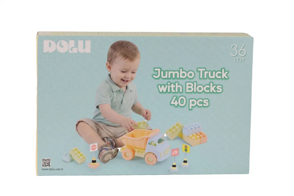 -Dolu Jumbo Traktör Ve Bloklar, çocukların hayal gücünü ortaya çıkarır.