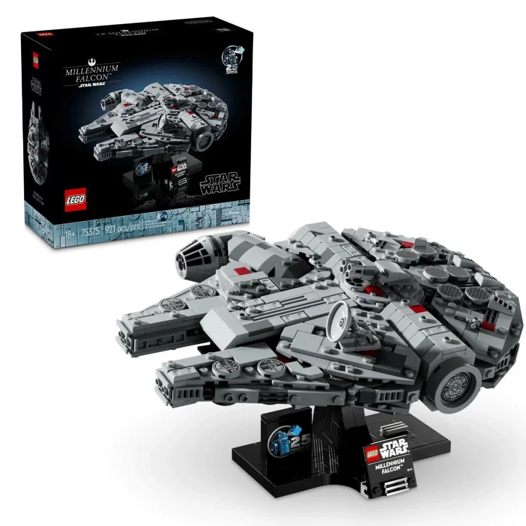 - Sergileme için üretildi - İnşa edilebilir standda bir isim plakası ve LEGO® Star Wars™ 25. yıl dönümü tuğlası vardır ve Millennium Falcon'u dinamik bir açıda sergilemek için tasarlanmıştır