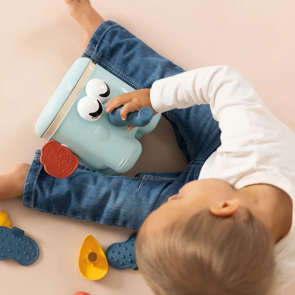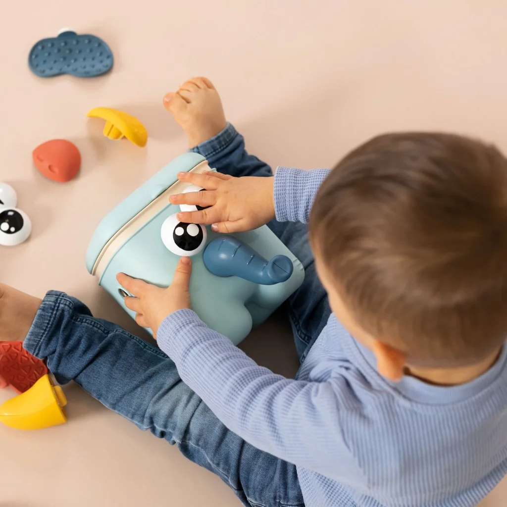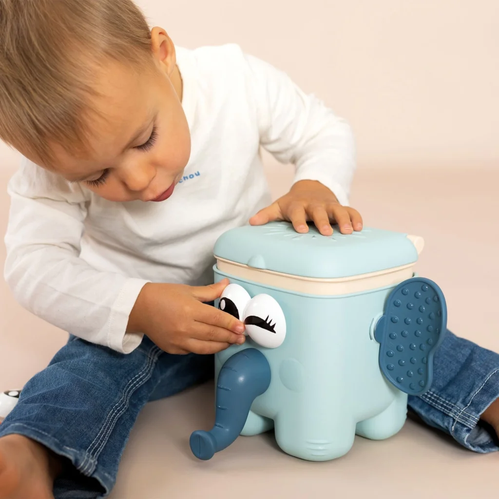 Çocuklar aksesuarları tabana takarak bir hayvan yaratırlar. Birleştirdikten sonra, tüm aksesuarların düştüğünü görmek için sadece kafaya bastırın! Bu oyuncak ince motor becerilerini, koordinasyonu ve hayvanların yüzlerinin farklı kısımlarının keşfini teşvik eder.