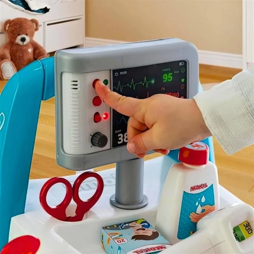 Smoby Tıbbi Elektronik Arabası Tıbbi Sepetiniz sayesinde gerçek bir acil durum doktoru olabilirsiniz! Bu sepet, tekerlekleri sayesinde evin her yerine kolayca taşınabilir ve hastalarınızı tedavi etmek için ihtiyacınız olan her şeyi içerir. Sepet içinde 1 şırınga, 1 mekanik termometre (yeşil, turuncu, kırmızı), 1 steteskop, 1 makas, 1 çift gözlük, 1 otoskop, 1 refleks çekici, 2 matara, 1 bilezik, 2 kukla kutusu, 2 sağlık kartı, kendinden yapışkanlı bandaj, 1 termometre ve 1 makyaj masası bulunmaktadır. Ayrıca, elektronik cihazlar sayesinde hastalarınızın sağlık durumunu ve kalp atışlarını ölçebilirsiniz. Vanity, tüm tıbbi ekipmanınızı taşımanıza ve istediğiniz zaman yardım etmenize olanak tanır.