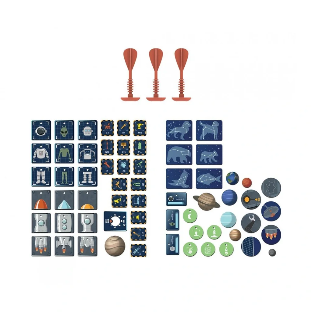 Ön tarafta bir uzay gemisinin içi, dış tarafta ise uzayda bir roket yer almaktadır. Sette toplam 60'tan fazla aksesuar bulunur: gezegenler, uzay, uzay çöpleri, cırt cırtlı oklar, takımyıldızlar, rozetler ve çok daha fazlası.