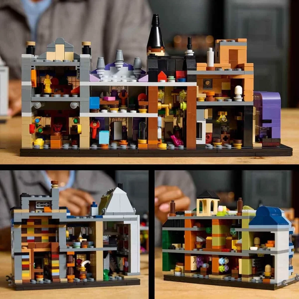 Diagon Yolu büyücü mağazalarının bu ince detaylı, mikro ölçekli LEGO Harry Potter sergileme modeli ile (76444) sihirli bir dünyaya yol alın. Parçalarla yapılan bu LEGO büyücü seti, fantastik Harry Potter maceralarının yetişkin hayranlarını Weasley Büyücü Şakaları, Florean Fortescue'nun Dondurma Salonu, Ollivanders, Bay Mulpepper'ın Eczanesi, ayrıca Gringotts Büyücü Bankası, Çatlak Kazan ve Gelecek Postası’nın genel merkezi gibi ikonik Diagon Yolu mekanlarını canlandırmaya davet eder. Her bina, görür görmez tanınan dış detaylara sahiptir ve içlerinde şahane küçük sürprizler bulunur.