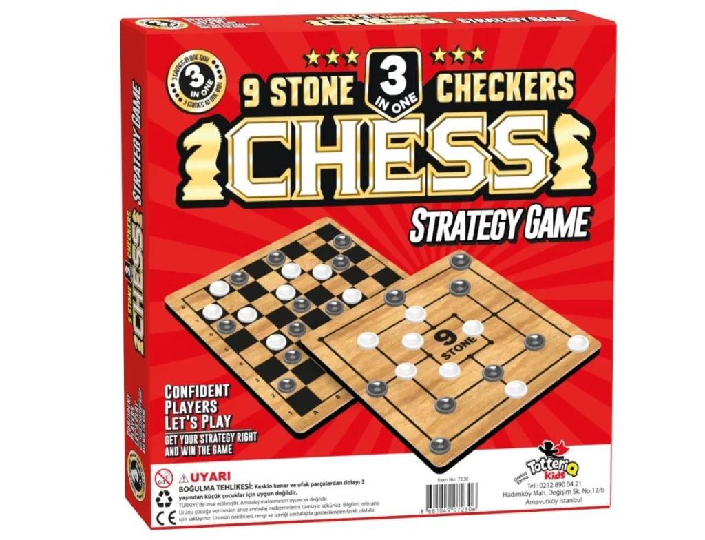 8225 SATRANÇ 9 TAŞ DAMA 3 Oyun Bir arada.