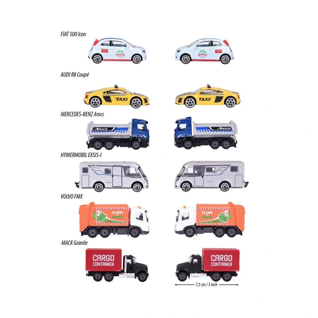 Majorette markasından harika metal(die-cast) araçlar sizlerle! Her bir araç orijinal lisanslıdır. Araçlar ortalama 7.5cm uzunluğundadır ve açılabilir parçalara sahiptir.(kapı kaput vb. gibi) Set içerisinde; 1- Hymer 2- MAN 3- Toyota, 4- Renault 5- Volkswagen 3 yaş üzeri çocuklar için uygundur.