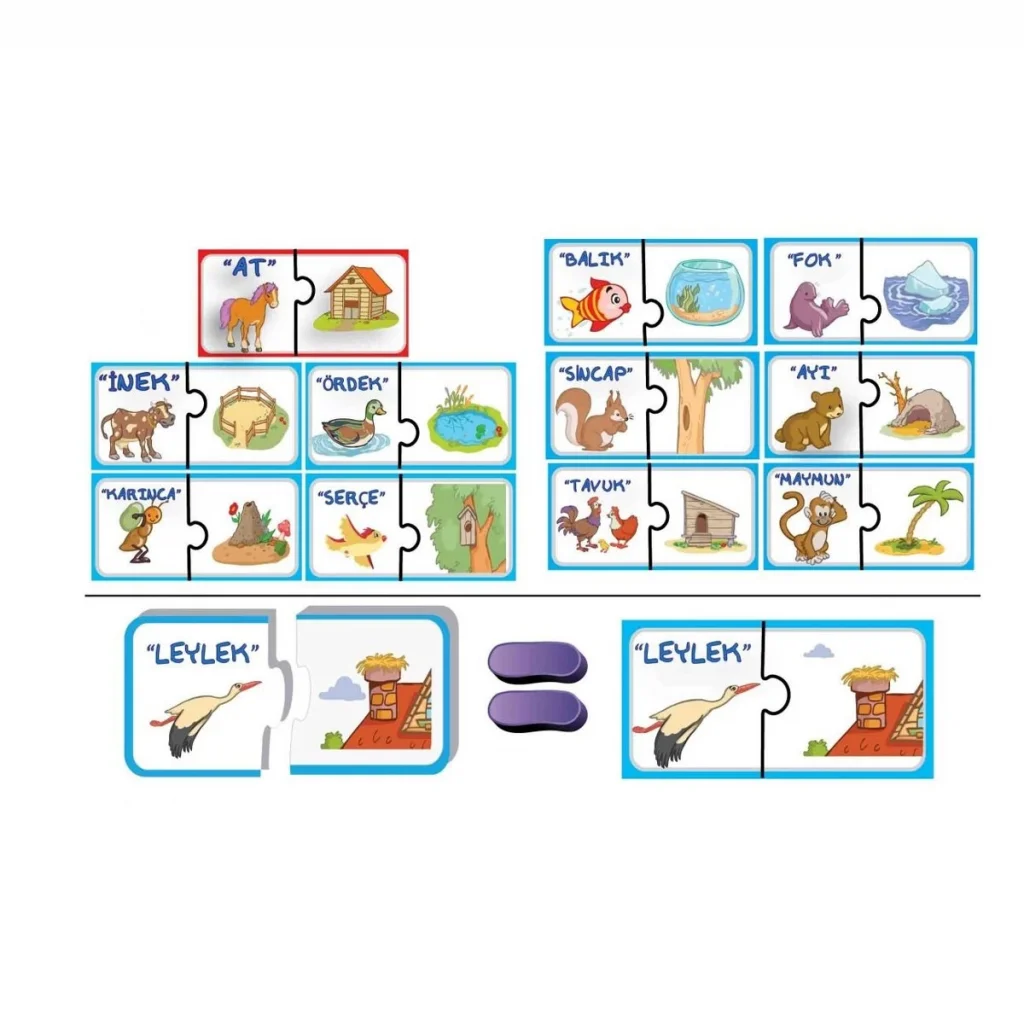 Hedef: Kartlarda resimleri bulunan hayvanların yuvalarını ve nerede yaşadıklarını bularak eşleştirmek.