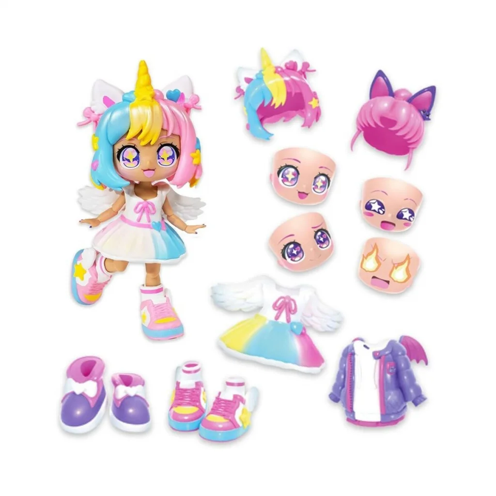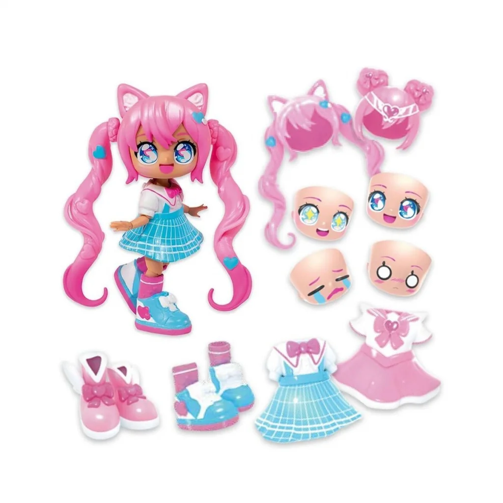 Her Animakii bebek; saç, yüz ifadesi, kıyafet ve aksesuarları değiştirilebilen modüler yapısıyla çocukların yaratıcılığını destekler ve sınırsız kombinasyon imkânı sunar.