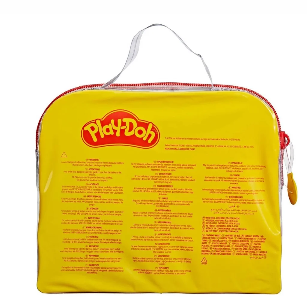 Hasbro, Play-Doh ve ilgili tüm özellikler Hasbro'nun ticari markalarıdır. Saklama çantası, 4 şekil kesici, merdane, makas, plastik bıçak, yuvarlama kesici, kepçe aracı ve 4 kutu Play-Doh Marka Modelleme Bileşiği içerir.