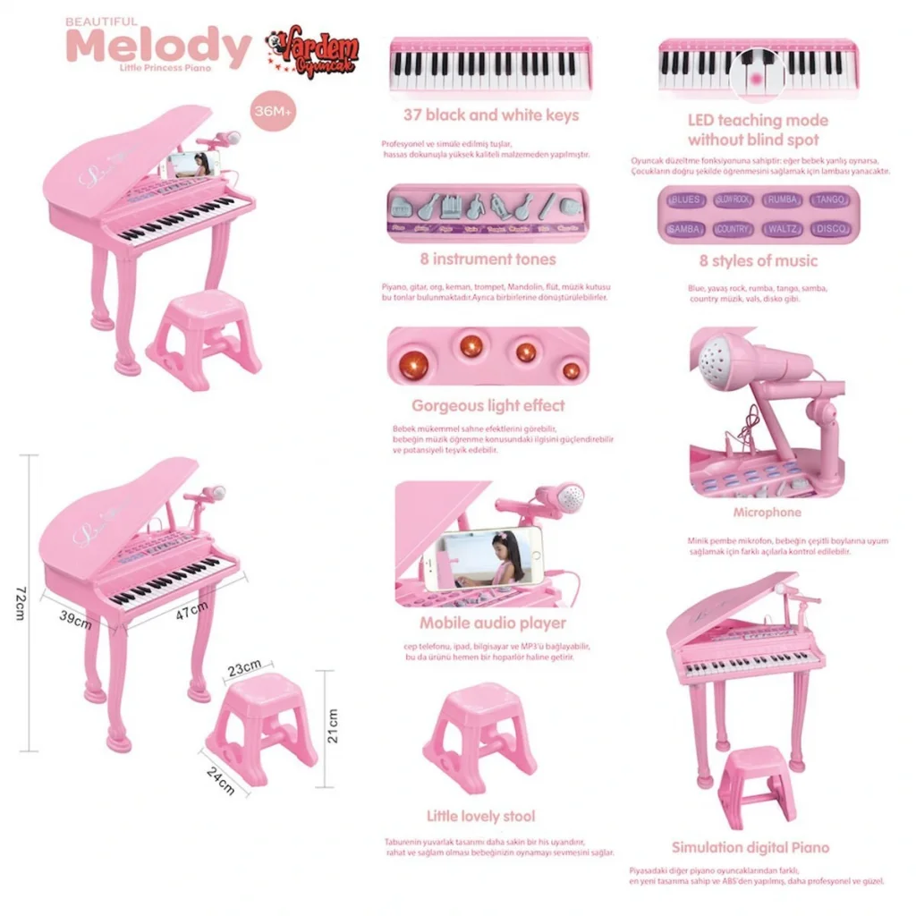 Bao-1403-0213 Pink 37 Tuş Büyük Pembe Piyano Mp3 Ve Mikrofonlu