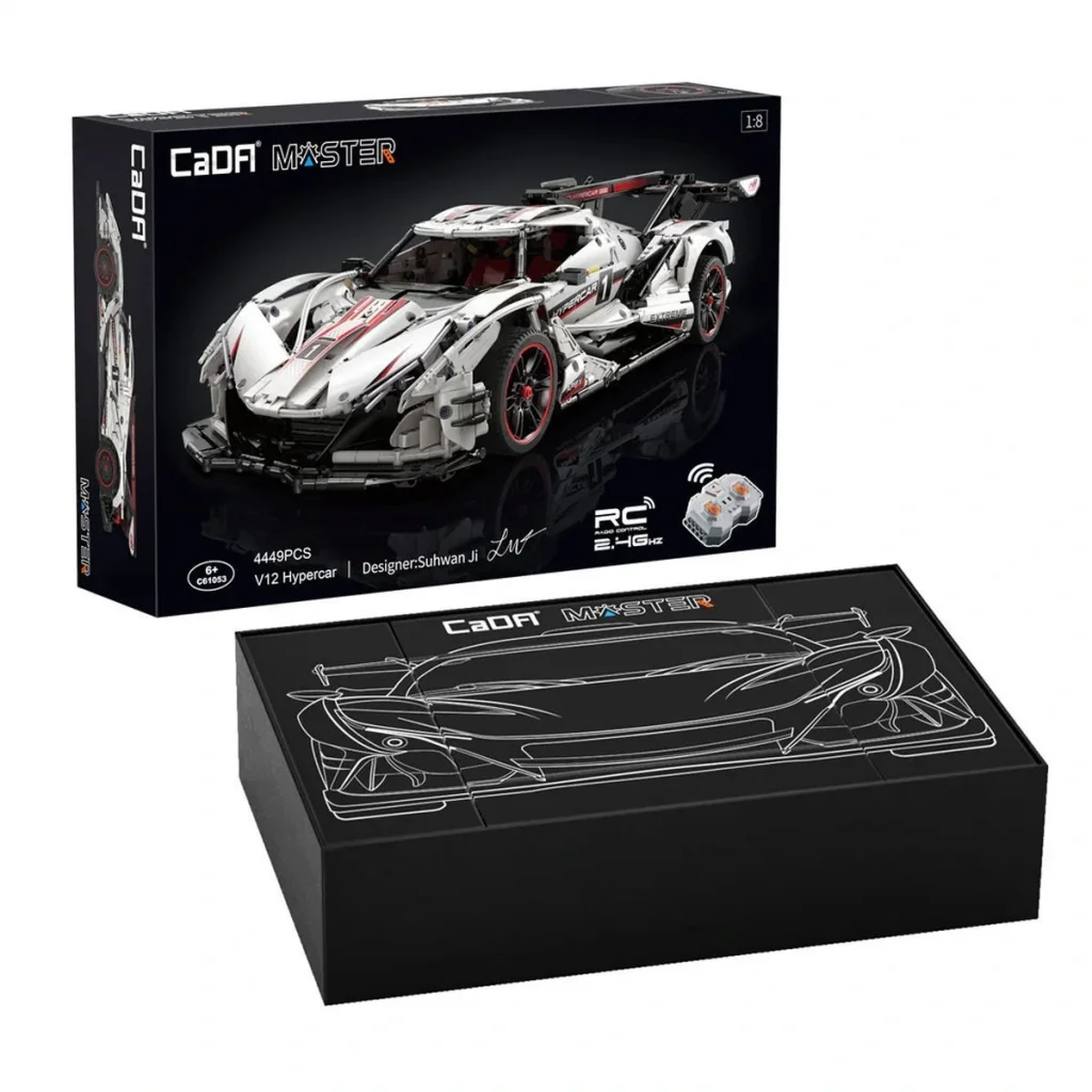 CaDA V12 Hypercar, uzaylı benzeri bir ön gövde, farlar ve bu zaten etkileyici modele fütüristik bir süper otomobil stili dokunuşu katan büyük bir hava giriş ızgarasına sahiptir. Bu yapım seti, süper otomobil tutkunları için kesinlikle olmazsa olmazdır. Bu V12 Hypercar, benzeri görülmemiş bir güç sağlayan bir canavar motorla donatılmıştır.