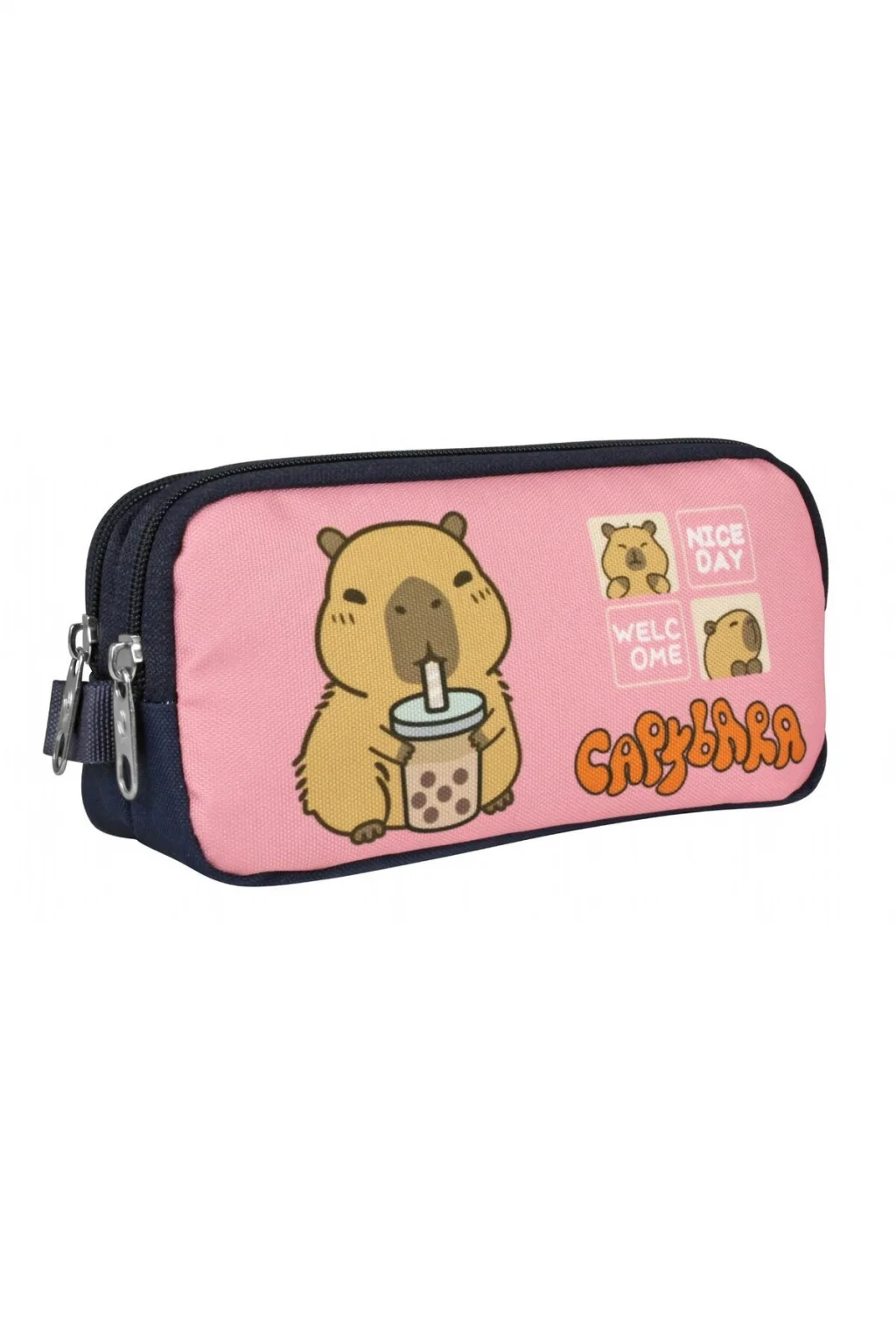 Ürün Adı: Capybara Kız Çocuk İki Bölmeli Kalem Çantası - Lacivert - Pembe - 5205 Çok Renkli