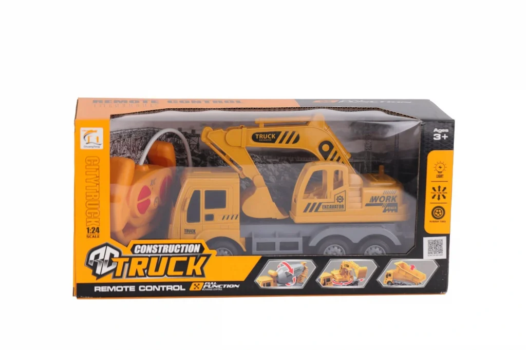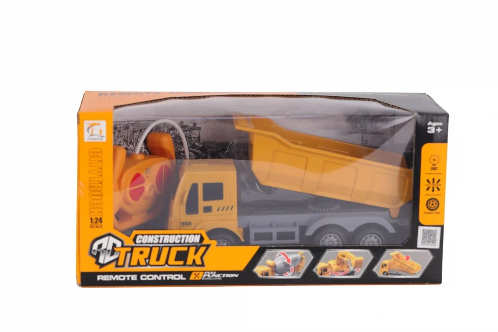 3 yaş ve üzeri için uygun •Uzaktan kumandalı (full function / çok yönlü kontrol) •Işık özelliği var •Kauçuk lastikler •Damper kısmı kalkıp indirilebiliyor •Sarı renkli, tipik şantiye kamyonu tasarımı Kutu Boyutu : 33x16x11 Cm
