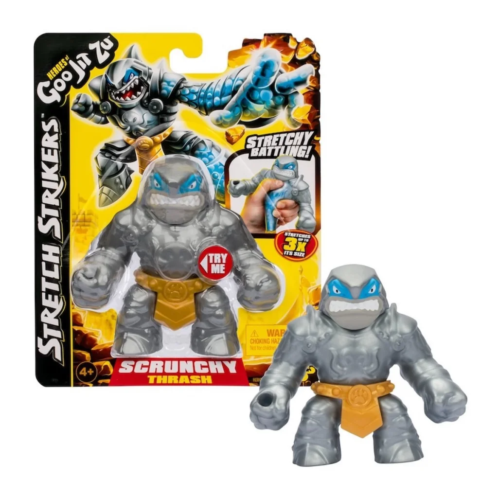 Goojitzu evreninde macera şimdi yepyeni Stretch Strikers serisiyle devam ediyor! Birbirinden güçlü esneme saldırısıyla gelen Goojitzu Stretch Strikers Tekli Paket kahramanları Blazagon, Thrash, Pantaro, Rock Jaw ve Blacknight olmak üzere 5 asortiden oluşuyor. Hepsini biriktirmek, esnetmek ve kapıştırmak çok eğlenceli! Üstelik her biri kendi özel iç dolgusuyla!