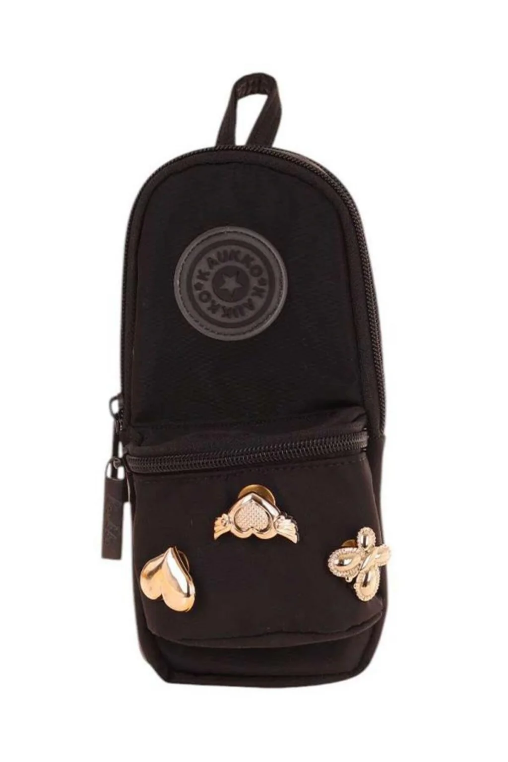 Kaukko Çanta Şekilli Kız Çocuk Üç Bölmeli Kalemlik - Siyah - Metal Aksesuarlı - K2742 Siyah