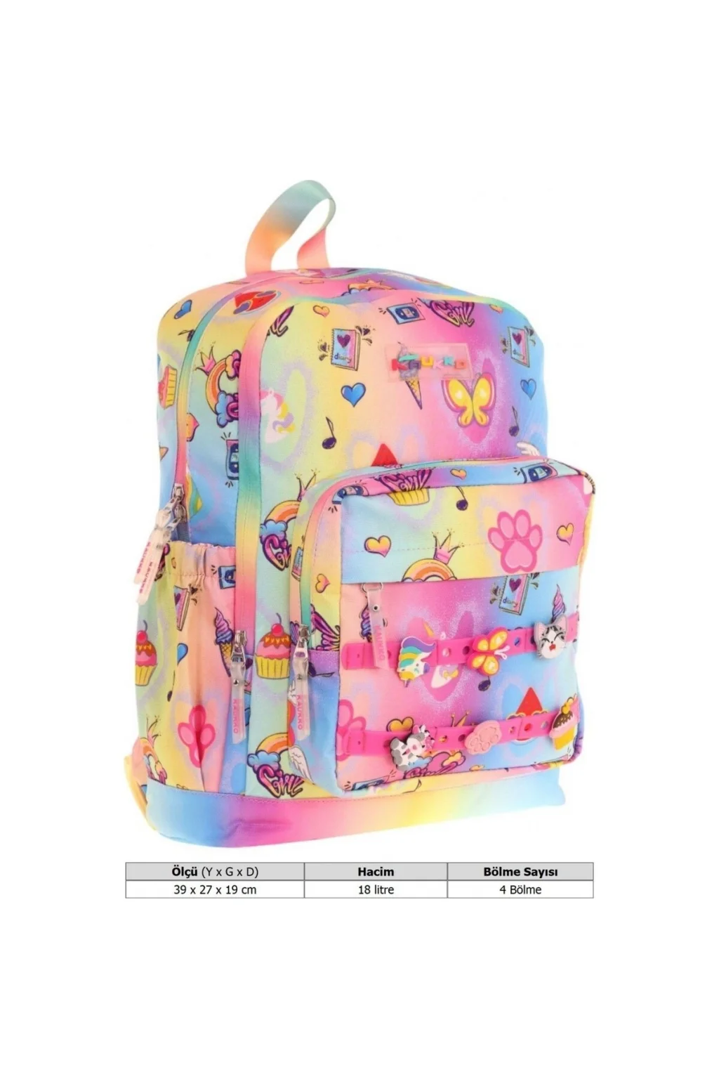Kaukko Kids Dört Bölmeli Kız Çocuk Silikon Aksesuarlı Mavi Sarı Ilkokul Çantası Kaukko Kids İlkokul Çantası - Sökülük Takılabilen Silikon Aksesuarlar - KK-L5244 Çocuklarınızın okul maceralarına eşlik edecek şık ve dayanıklı bir çanta mı arıyorsunuz? Kaukko Dört Bölmeli Silikon Aksesuarlı İlkokul Çantası, hem işlevselliği hem de eğlenceli tasarımıyla ilkokul 1, 2, 3 ve 4. sınıf öğrencileri için ideal bir seçim! Bu çanta, fermuarlı dört ana bölmesiyle geniş ve düzenli bir saklama alanı sunar.; A4 formatındaki kitaplar ve resim defterleri için özel olarak tasarlanmış geniş iç hacmi, çocukların tüm okul malzemelerini rahatça taşımasını sağlar.; Ayrıca özel iç astar ve yan suluk cepleri, eşyaları organize etmek için ekstra kolaylık sunar.; 18 litrelik kapasitesiyle, tüm ihtiyaçlar için yeterli alan sunarken, kompakt dış boyutları (39 x 27 x 19 cm) ile taşımayı kolaylaştırır.; Çantanın en eğlenceli özelliği ise sökülüp takılabilen renkli silikon aksesuarlar! Çocuklar, çantalarını kendi tarzlarına göre kişiselleştirebilir.; Üstelik özel dokulu, su geçirmez nano teknoloji kumaşı sayesinde yağmurlu günlerde bile eşyalar güvende kalır.; Kaukko'nun özel fermuar başlıkları, çantaya hem şıklık hem de kullanım kolaylığı katar.; Konfor da unutulmadı! Terletmeyen arka panel ve yastıklı, ayarlanabilir omuz askıları, uzun süreli kullanımlarda bile maksimum rahatlık sağlar.; Son derece dayanıklı yapısıyla bu çanta, hareketli okul günlerine meydan okur.; 1 yıl üretici firma garantisiyle sunulan Kaukko İlkokul Çantası, kalite ve tarzı bir araya getirerek çocuklarınızın okul hayatını renklendiriyor.; Hem pratik hem de eğlenceli bu çanta, miniklerin en sevdiği yol arkadaşı olacak!