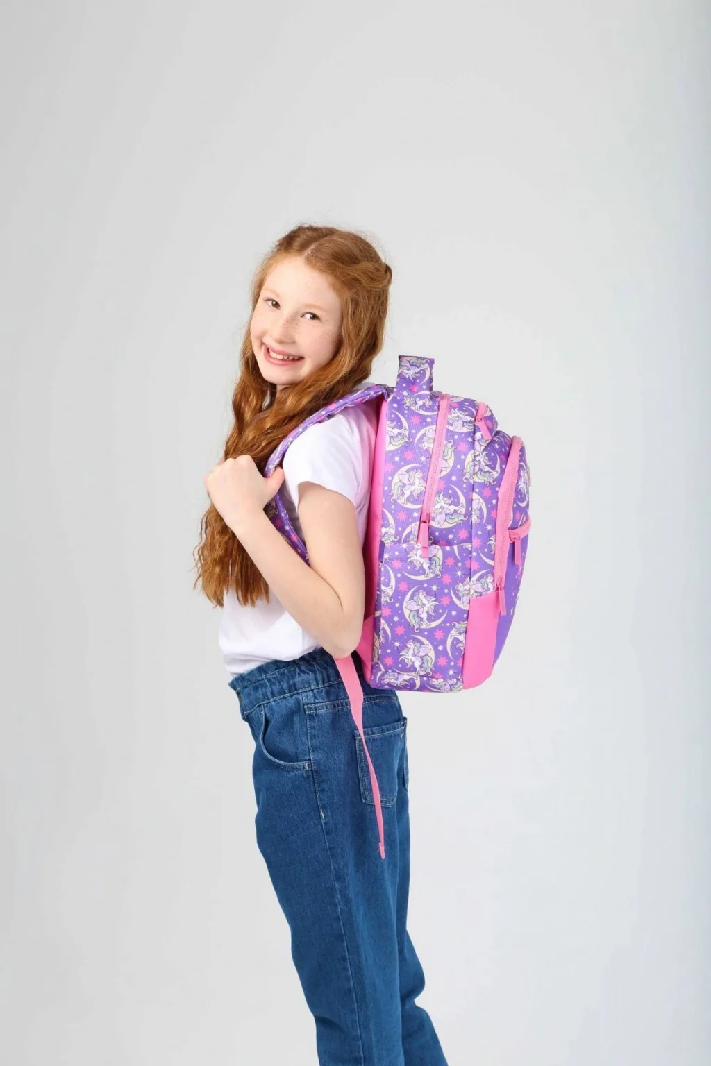 Kaukko Kids Kız Çocuk İlkokul Çantası - Mor Unicorn * Karınca çanta güvencesi ile Türkiye'de üretilmiştir. ; * Sağlığa zararlı kimyasal madde içermez. ; * Malzeme ve üretim hatalarına karşı 1 yıl süre ile üretici firma garantisi altındadır. ; * Fermuar ile açılan üç ana bölmeden oluşur. ; * Kaliteli malzeme ve canlı renkleri ile dikkate çeker. ; * Özel Kaukko fermuar uçları kullanılmıştır. ; * İlkokul ve ortaokul kullanımı için uygundur. ; * Her iki yanında lastikli matara ve aksesuar cebi bulunur. ; * Çanta içi özel astar ile kaplıdır. ; * Ölçüler : 39 x 29 x 16 cm * Kapasite: 18 litre;