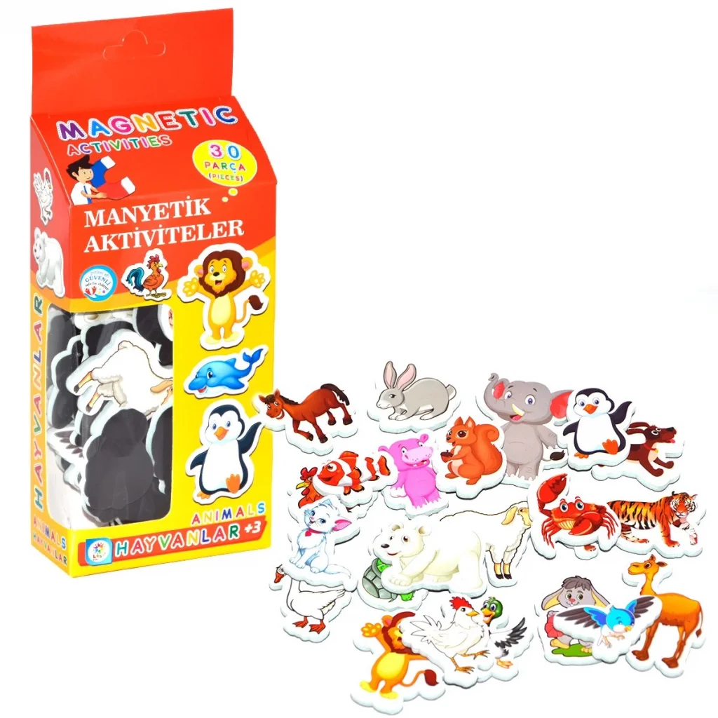 İçinde bulunan 30 Manyetik Hayvanlar Kartları ile çocuğunuz hayvanları eğlenerek öğrenecek.