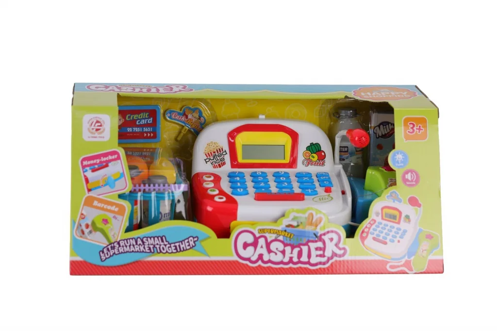 Tuşa bas ve paraları say Yaş:3+ 3 x 1.5V AA pil ile çalışmaktadır. Piller dahil değildir. Çocuklarınızın alışveriş, ödeme gibi kavramları daha kolay öğrenmesini, el ve göz koordinasyon yeteneğinin geliştirmesini sağlayacak! Şık görünümlü hesap makinesi fonksiyonlu çalışan yazar kasa ile çocuklarınız 4 işlem yapabilecektir. Kutu boyutu: 42x13x17 cm
