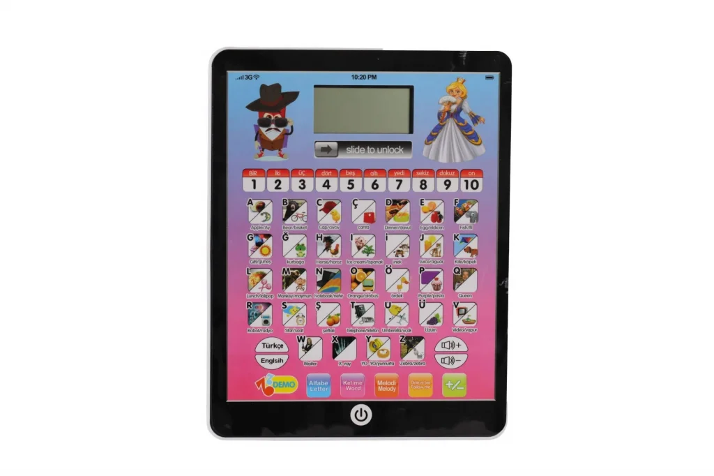 100 Fonksiyona sahip eğitim tableti2in1 TÜRKÇE/English110 numaralı harf çalışması adından z’ye göreceli kelime çalışması.