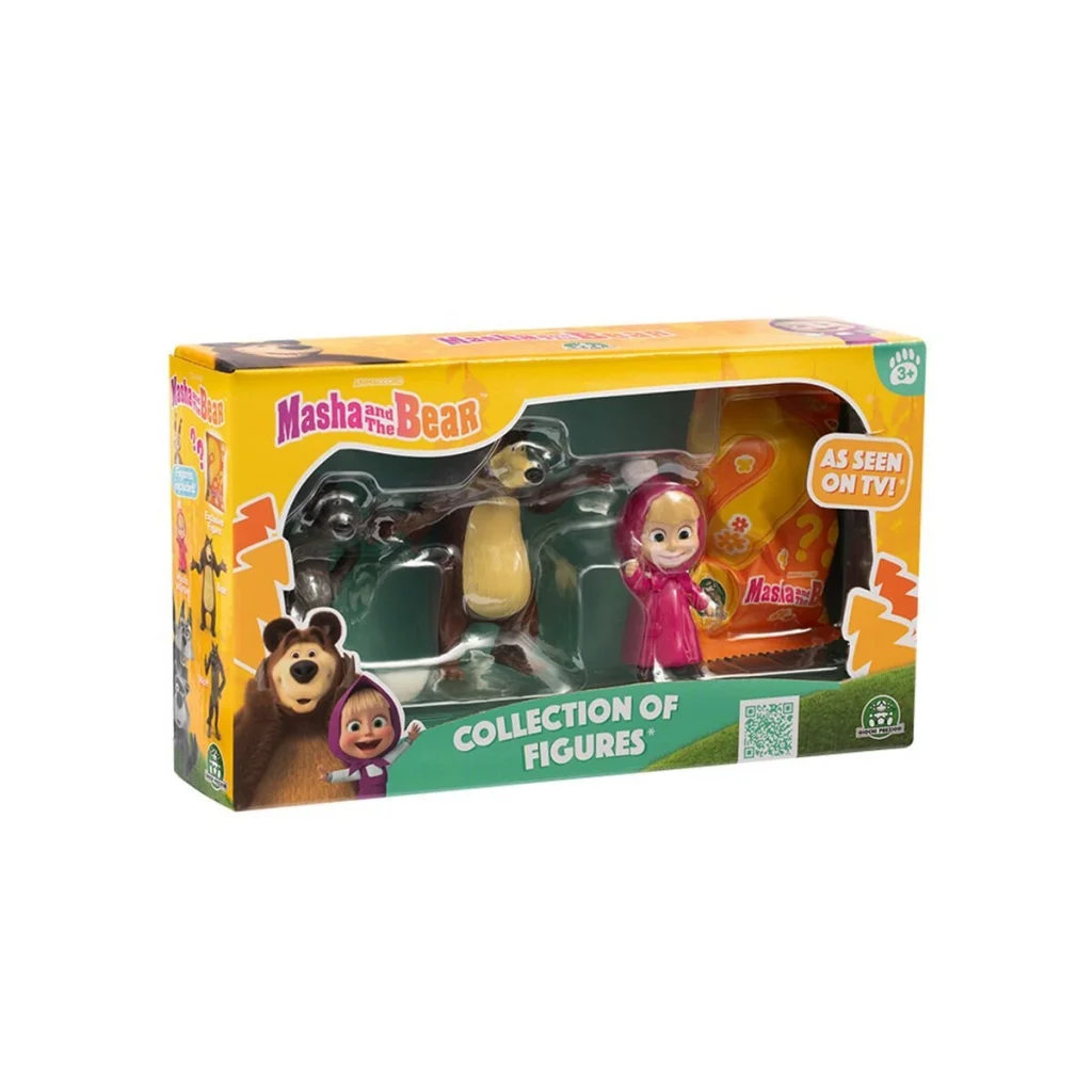 Maşa ile Koca Ayı 4’lü Figür Seti, serinin sevilen karakterlerini tek pakette buluşturuyor. Kutuda Koca Ayı, Kurt, pembe paltolu Maşa ve sürpriz olarak paketlenmiş Doğum Günü Maşa figürü yer alıyor.