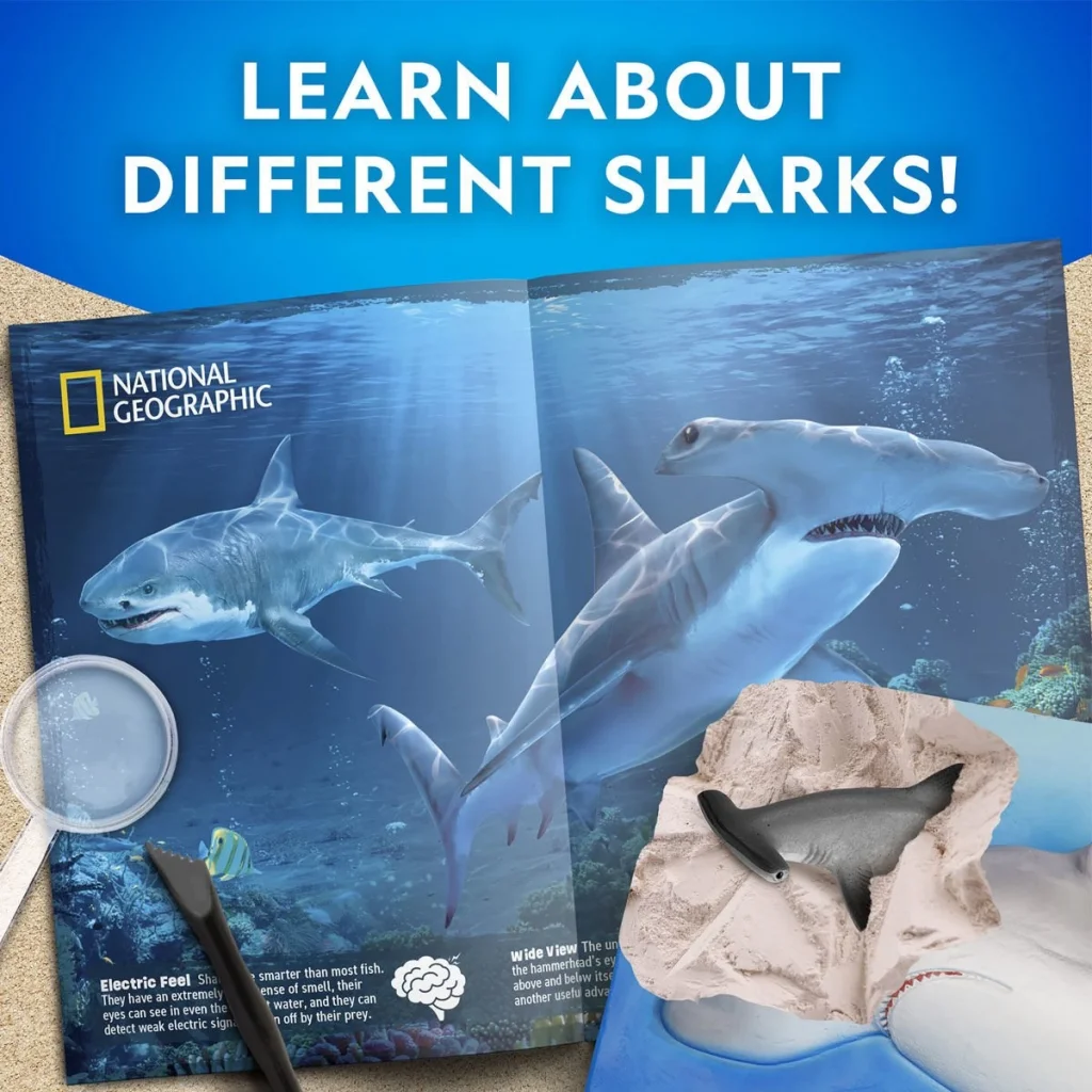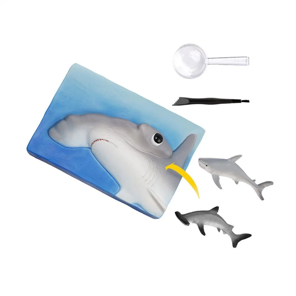 NatGeo Köpek Balığı Bulma Kiti ile her çocuk keşfin ve bilimin heyecanını yaşayacak. Kumlara gömülü iki farklı türdeki köpekbalığının yer aldığı replikayı paketten çıkan parçalarla kazımak ve ortaya çıkarmak müthiş bir deneyim!