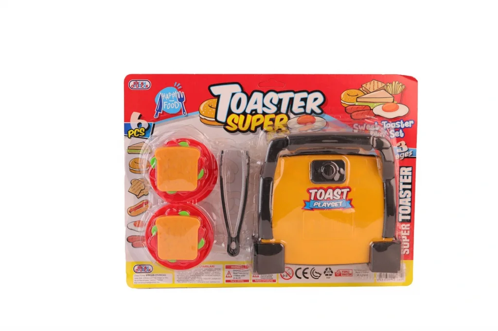 Bu set, minyatür bir tost makinesiyle birlikte küçük bir mutfak ortamı sunar, böylece çocuklar hem eğlenir hem de oyun sırasında pratik yaparlar.