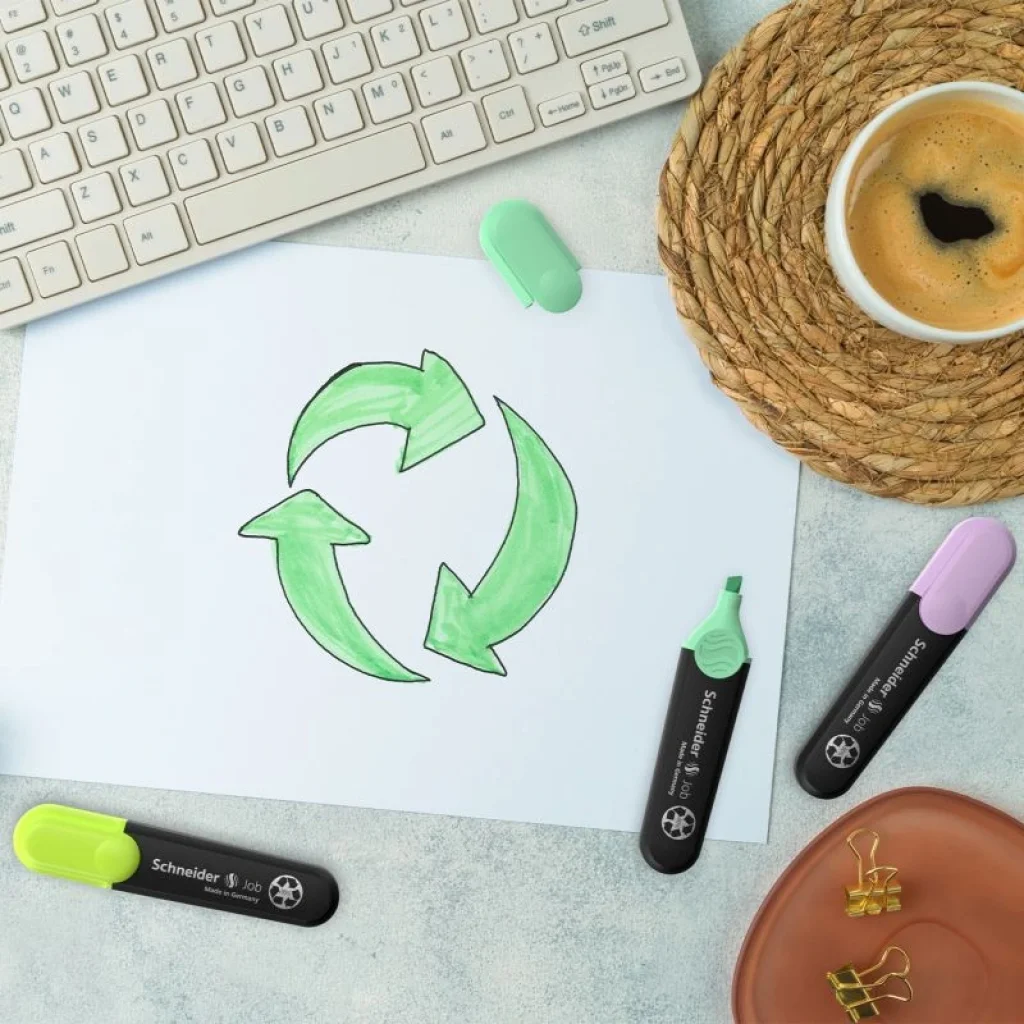 - Mürekkep haznesi ve ucu geridönüştürülmüş fiberden üretilen, mürekkebi bio-bazlı hammadeden üretilmiştir