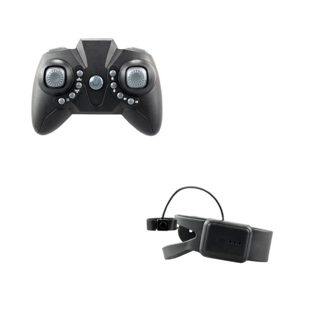 Flashing Drone, bileğinizden kontrol etmenizi sağlayan bir hareket sensörü olan klasik uzaktan kumandası veya saat uzaktan kumandasıyla kontrol edilebilir.