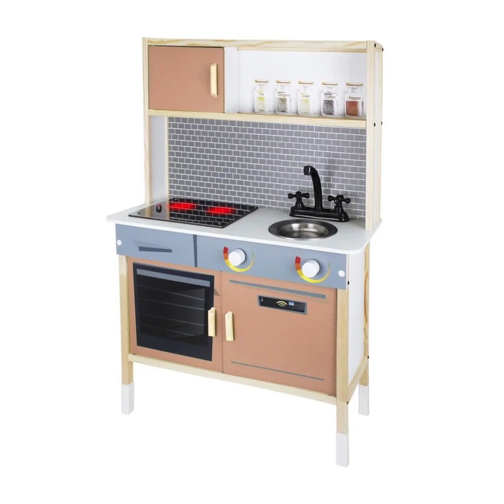Ahşap Ledli Çocuk Mutfağında bulunan ledli ocak kısmı çocuklarınıza gerçekçi bir oyun deneyimi sunar. Aynı zamanda bu ahşap ledli çocuk mutfağı çocuğunuzun el becerilerini arttırır, yaratıcı düşünme ve zeka gelişimine katkı sunar. Keskin köşe ve kenar bulunmaz.