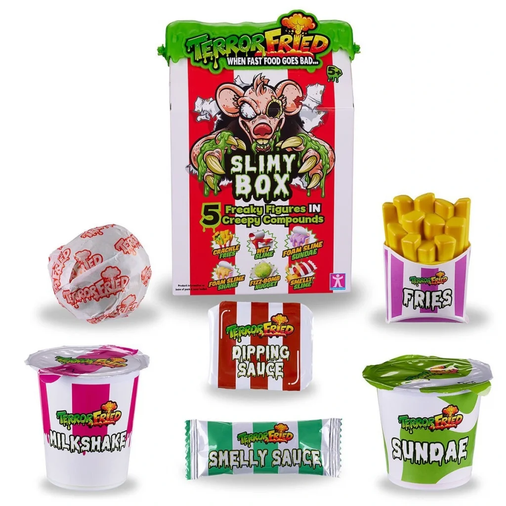 Her TerrorFried yemeği, bu yeni koleksiyonla oynarken köpürtebileceğiniz, ezebileceğiniz, çatlatabileceğiniz veya sızabileceğiniz ürkütücü bir duyusal bileşik içerir.